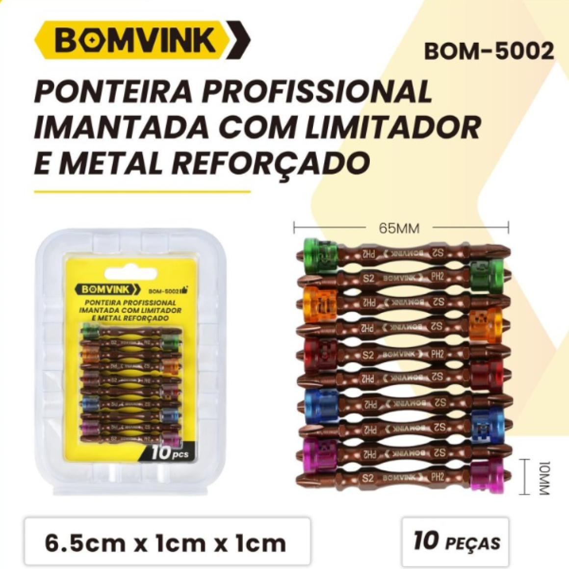 BITS PONTEIRA PHILLIPS 10 PÇS MAGNETICAS C/ LIMITADOR BOM-5002
