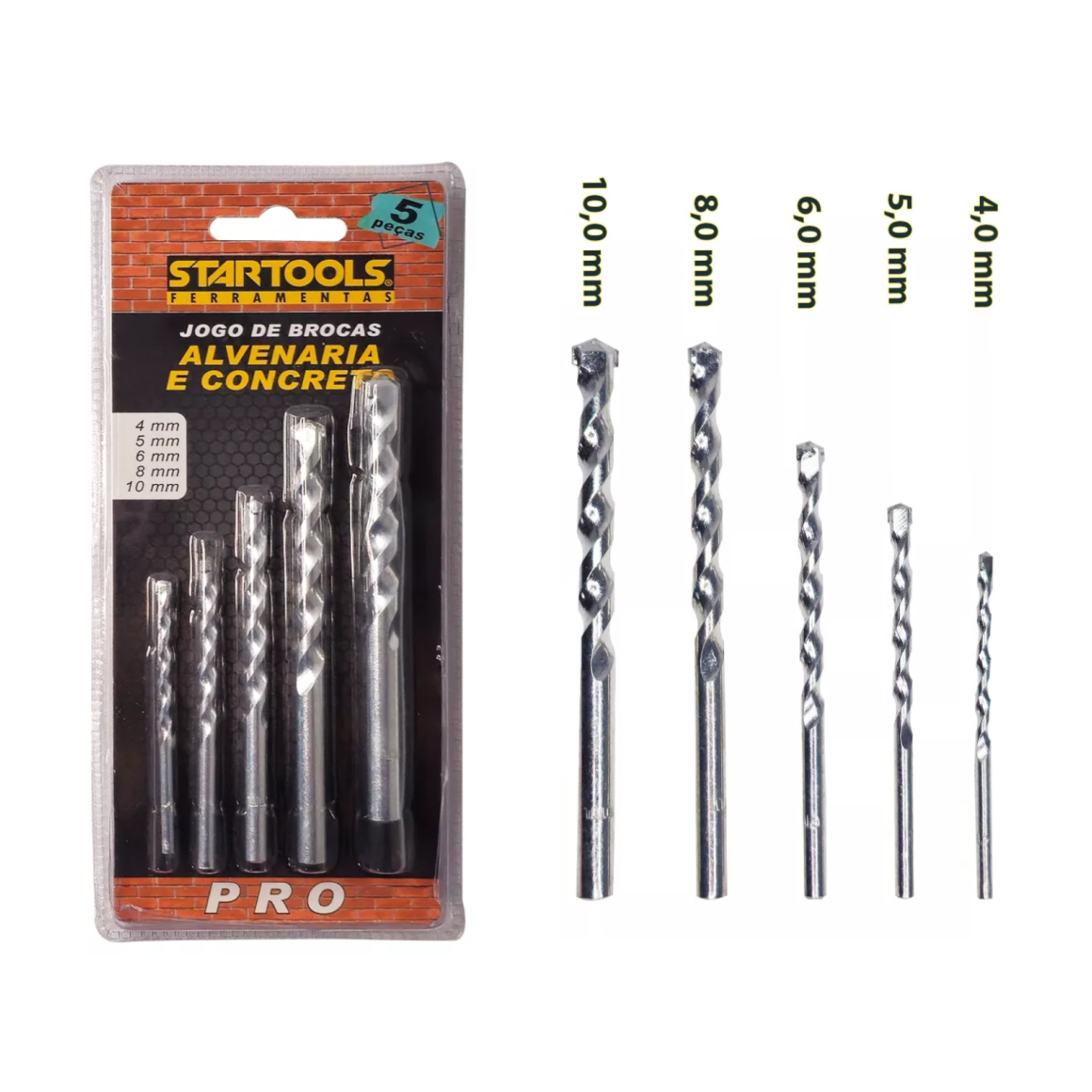 BROCAS P/ CONCRETO C/ 5 PCS 4,5,6,8,10MM STARTOOLS AR0122