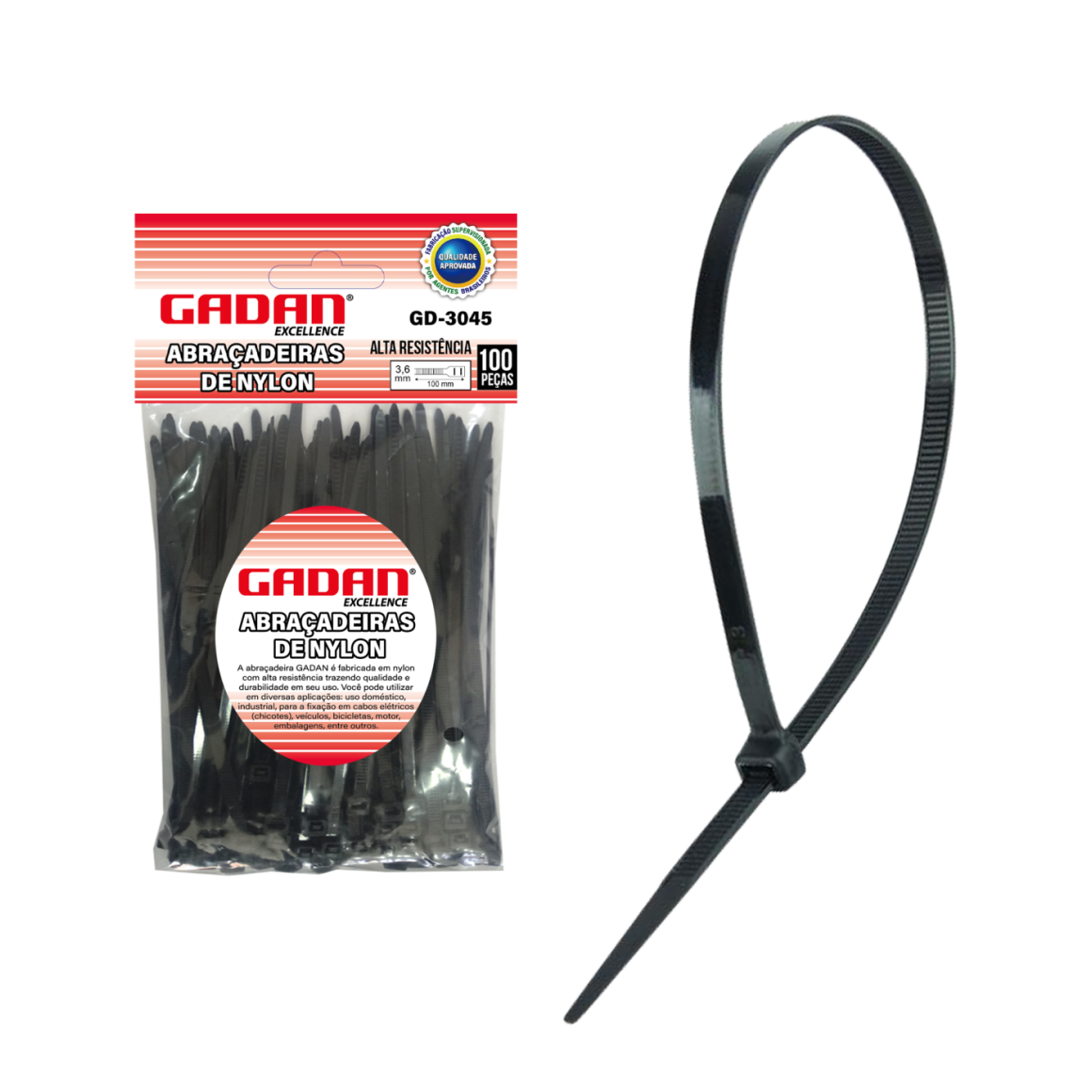 ABRAÇADEIRA DE NYLON - 3.6X100MM C/ 100UN. PRETA - GD 3045
